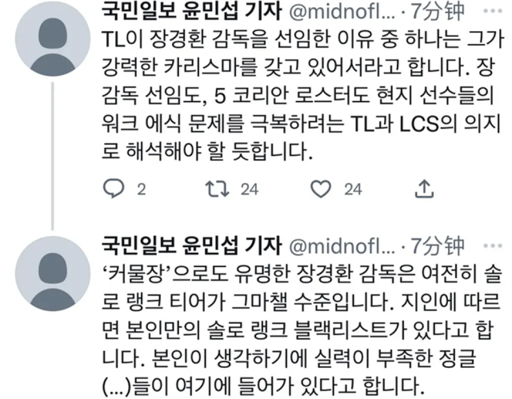 第三,marin实力还是很强的。他已经年近三十,但marin依然维持着宗师、王者的水平。第四,marin出身T1,对选手肯定很严格。知情人称TL之所以打造这样一支“全韩班”,就是想解决本赛区选手职业态度问题,给他们上点压力。