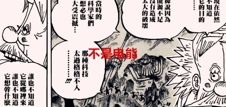 在看完不少网友的见解后,都说艾尼路的电能是启动巨大机器人的能源,但这里有两个矛盾,一是几百年前,就已经有人发明出电这种玩意了?这不科学吧,到现在为止,海贼世界依旧是用篝火作为照亮道路的工具,暂时还没出现手电筒这种工具吧,到了后半部分的剧情,才有了电话虫。其次是,贝加庞克既然知道有电话虫这种通讯工具,那为什么他想不到启动巨大机器人的能源就是电?以他的聪明才智,不可能想不到这一点吧。