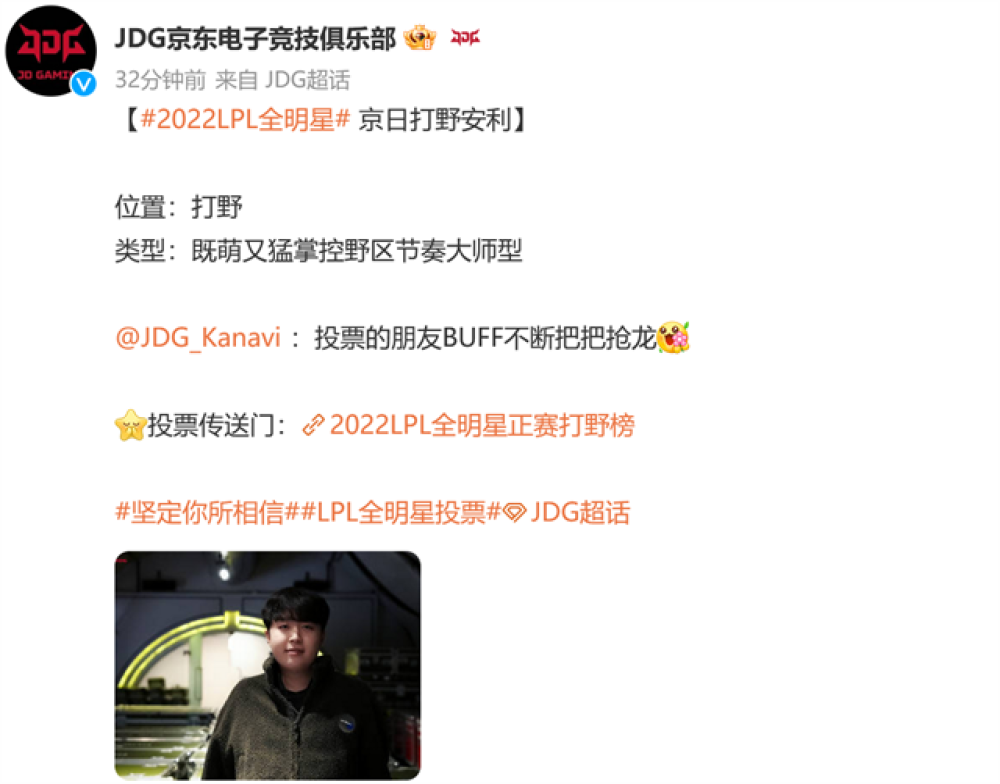 恰好,JDG也发了一条动态间接“回应消息”。JAG教练才说kanavi不会回LCK赛区,JDG就喊话粉丝给kanavi投票。按照教练的说法,kanavi想回去但是没机会,大概率被合同卡住。优先续约合同就是在条件相同的情况下,优先选择老东家。而JDG是LPL最有钱、阵容最强的战队之一,需要很多明星选手抱团才能超过他们,跟JAG教练的说法对上了。