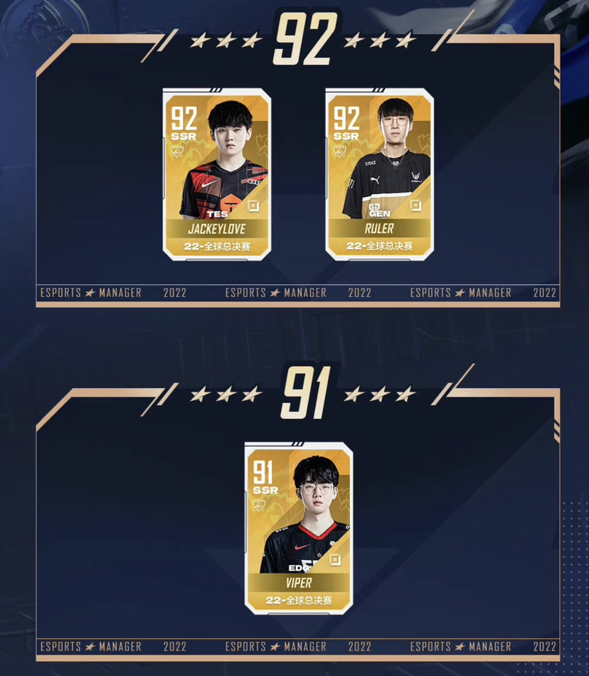 从本次世界赛来看,LPL的下路表现确实不尽如人意,Viper也确实相对表现好一点,但也没有打出那种绝对压制,面对小吕布也同样占不到便宜,而阿水应该算是LPL最后的排面了,他在面对deft的压制力上就可以看得出来,只是很可惜没能挺进八强,而似乎电竞经理的卡也已经说明了一切,jackeylove作为92分的SSR卡,确实要比viper这个91分卡要高,不服的话电竞经理来一把模拟战就知道,谁才是lpl最后的排面了!