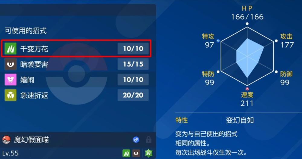 不过,可能是变幻自如和自由者这种特性实在太强,这一代给削了,每次出场战斗只能触发一次。