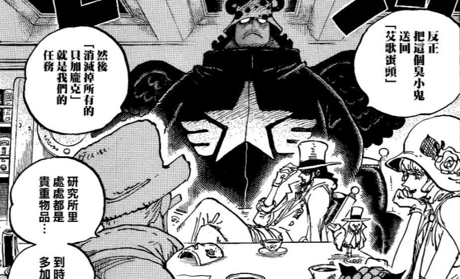 在情报中,路奇他们被拒绝之后,果然就不再有所顾忌,直接利用炽天使熊的传送能力,把CP0全都传送到了蛋头岛内。而且也曝光了,路奇他们杀贝加庞克的真正原因,就是因为贝加庞克想要研究远古国家的神秘能源,为世界上所有人提供免费能源。随着他逐渐深入研究空白的一百年,也就犯了大忌,于是伊姆下令,CP0来执行。