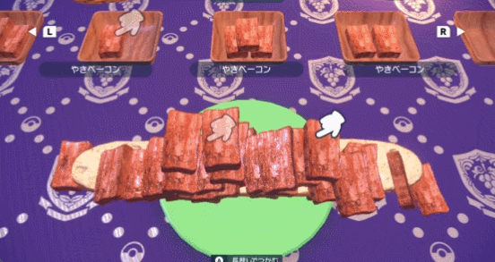 也不知道是不是为了摆脱食材堆砌被破坏导致的抓狂,最近宝可梦玩家们开始在游戏中玩起了堆培根塔游戏。即在制作三明治的过程中,抛弃了盖在三明治上面、常常惹人恼怒的面包,将三明治填充食材全部换成易于堆放的培根,接下来只需要将培根向上不停堆砌,直到培根塔坍塌。
