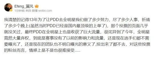 翼风在微博中就描述了当时拉票的艰难,即便当时PDD已经是国内最顶级的上单了,依然需要做出许多努力,才能入选正赛。万幸全明星赛所取得的成果并没有辜负大家付出的努力,PDD本人也因此收获了巨大流量。
