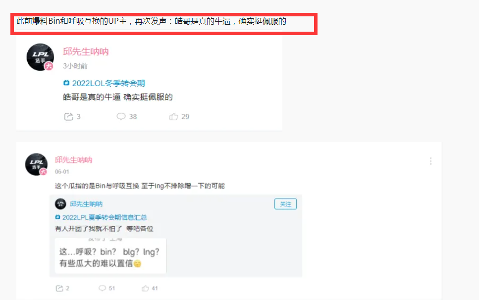 另外Doinb在直播中暗示会有劲爆的消息出现,之前大家认为是RNG,而TES的瓜爆料出来之后,大家开始认为Doinb可能暗示的是TES。不过TES选择了中单ROOKIE的话,那么小虎很可能去WBG。