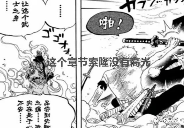 本应该这一期章节中,索隆应该要有表现才对,经过和之国一战,索隆实力又暴涨了,而且索隆也成为了皇副候选人,理应让索隆多出手才对,可尾田还是选择性隐藏索隆,这是怕控制不住索隆的实力?所以才不让索隆出手?按照目前的情况,索隆都不知道路奇和卡库已经来了,这也就是说,索隆和他们交手的可能性很低,所以说索隆要沦为酱油王了。
