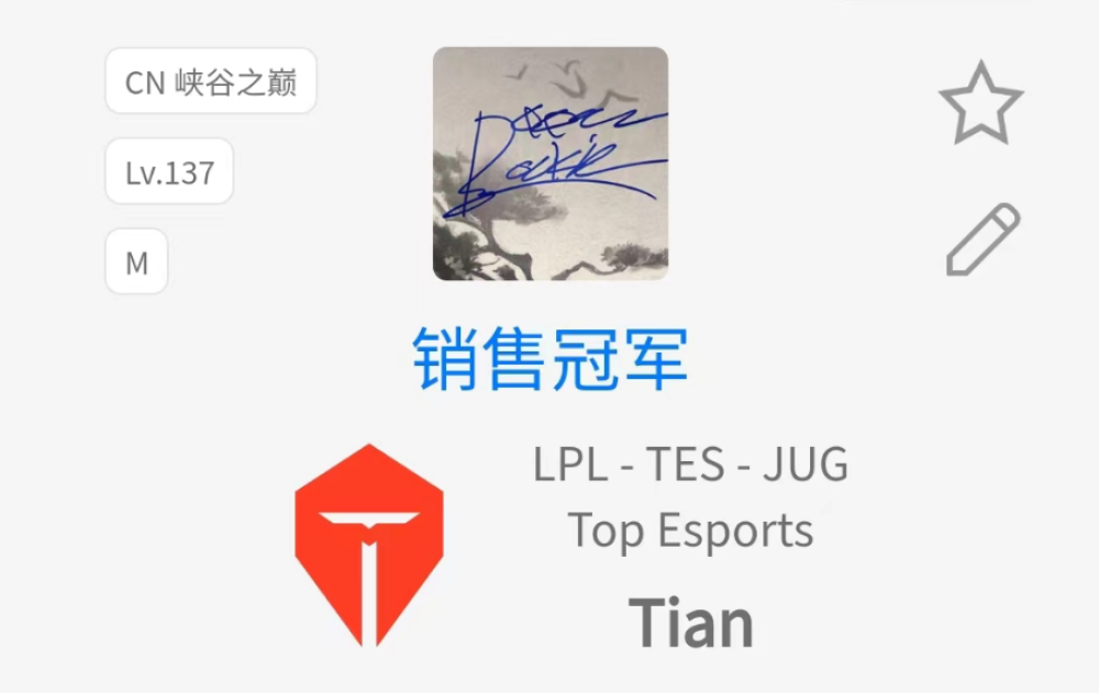 值得一提的是,之前小天加盟TES的时候,他曾将自己的头像直接换成了JackeyLove的冠军皮肤签名头像。而这一次,伴随着Rookie有可能加盟TES,小天的这一举动或许就算得上是还未官宣之前的最有力的实锤了。