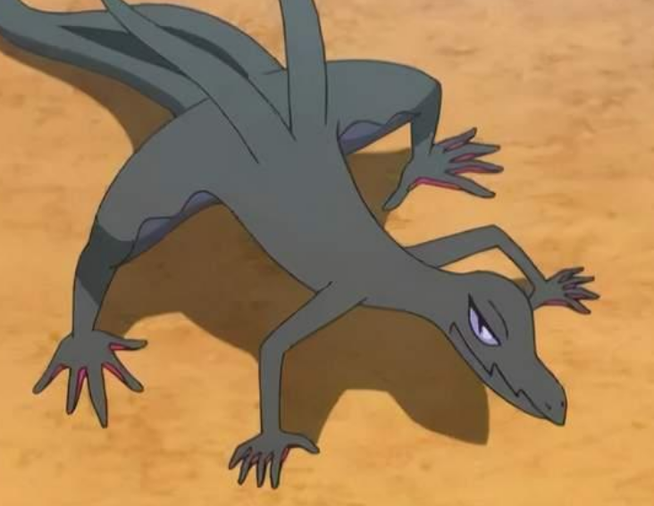 奥利薇的第三只是焰后蜥,焰后蜥和雪妖女一样,是只有雌性的宝可梦,夜盗火蜥只有雌性才可能进化为焰后蜥,官方对此的解释是雄性一般因为为了照顾雌性,所以已经没有进化的体力了,嗯,所以焰后蜥的种群社会规则其实是雌性至上的,焰后蜥作为特攻手,一般主要做输出上的消耗,奥利薇的焰后蜥的配招为毒液冲击+烧尽+毒瓦斯+龙之波动,注意其特性腐蚀也可以影响钢系。