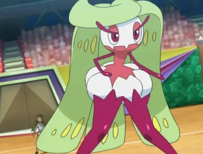而奥利薇这样携带了四只“美女”宝可梦的,主要战力却不是沙奈朵、布里姆温这样的,而是灰尘山,这实在是让玩家大跌眼镜,而官方想借由这个来表达奥利薇是个怎样的人呢?我们不得而知,但也大概能够猜出一二,当然也有可能是什么都没表达,还是见仁见智吧,小二这里就不明说了,奥利薇的灰尘山可以进行超极巨化,配招为垃圾射击+跺脚+岩石爆击+毒菱。