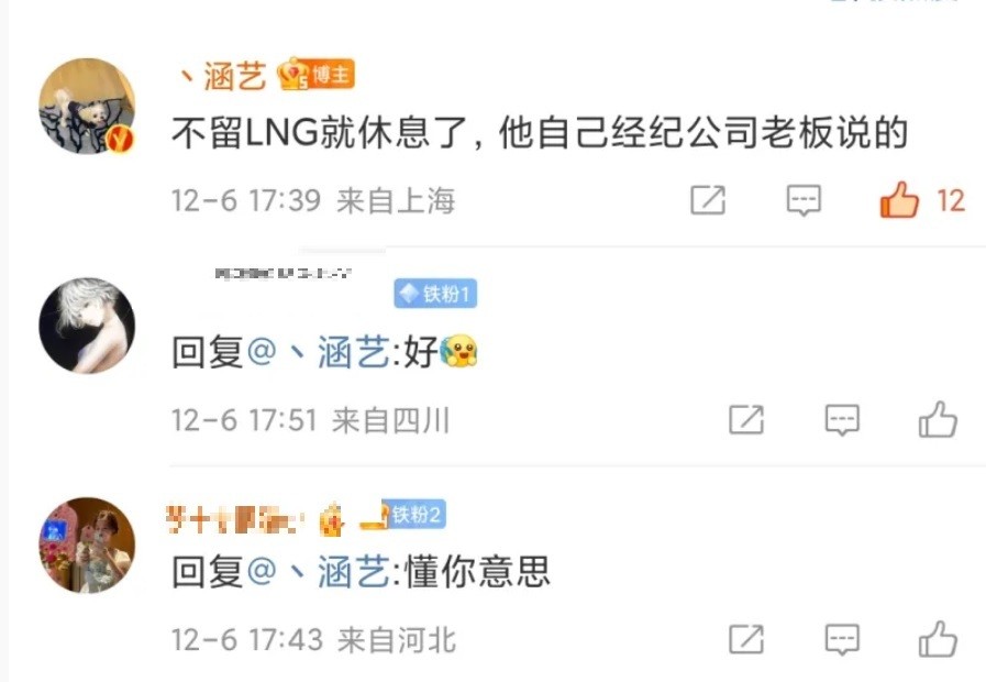 给出爆料的是涵艺,其在转会期中的爆料准确性没有特别高,所以新的消息准确性不好判断,他给出的新消息是说Doinb只剩一种可能,就是留队LNG,如果失败则会选择休息,据说消息源是来自经纪公司的老板。
